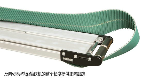 反向v形導(dǎo)軌沿輸送機的整個長度提供正向跟蹤