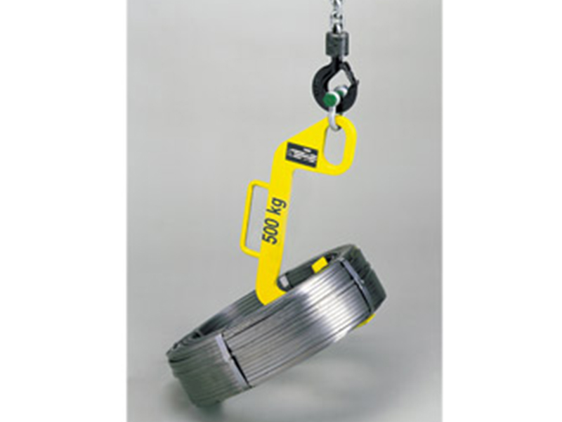此系列吊鉤特別用于操作卷鋼或較寬的物體。當(dāng)可旋轉(zhuǎn)吊鉤固定后并拉起,卷鋼會從水平位置轉(zhuǎn)換到垂直位置,非常方便運輸以及將物體置于機(jī)器或架子上。